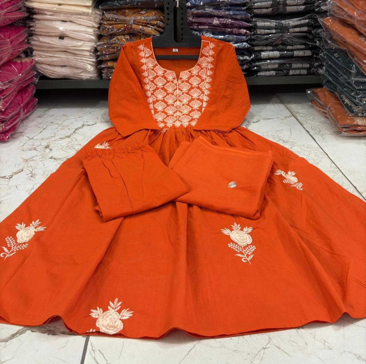 Set Includes: Long cotton kurti, pant, and malmal dupatta