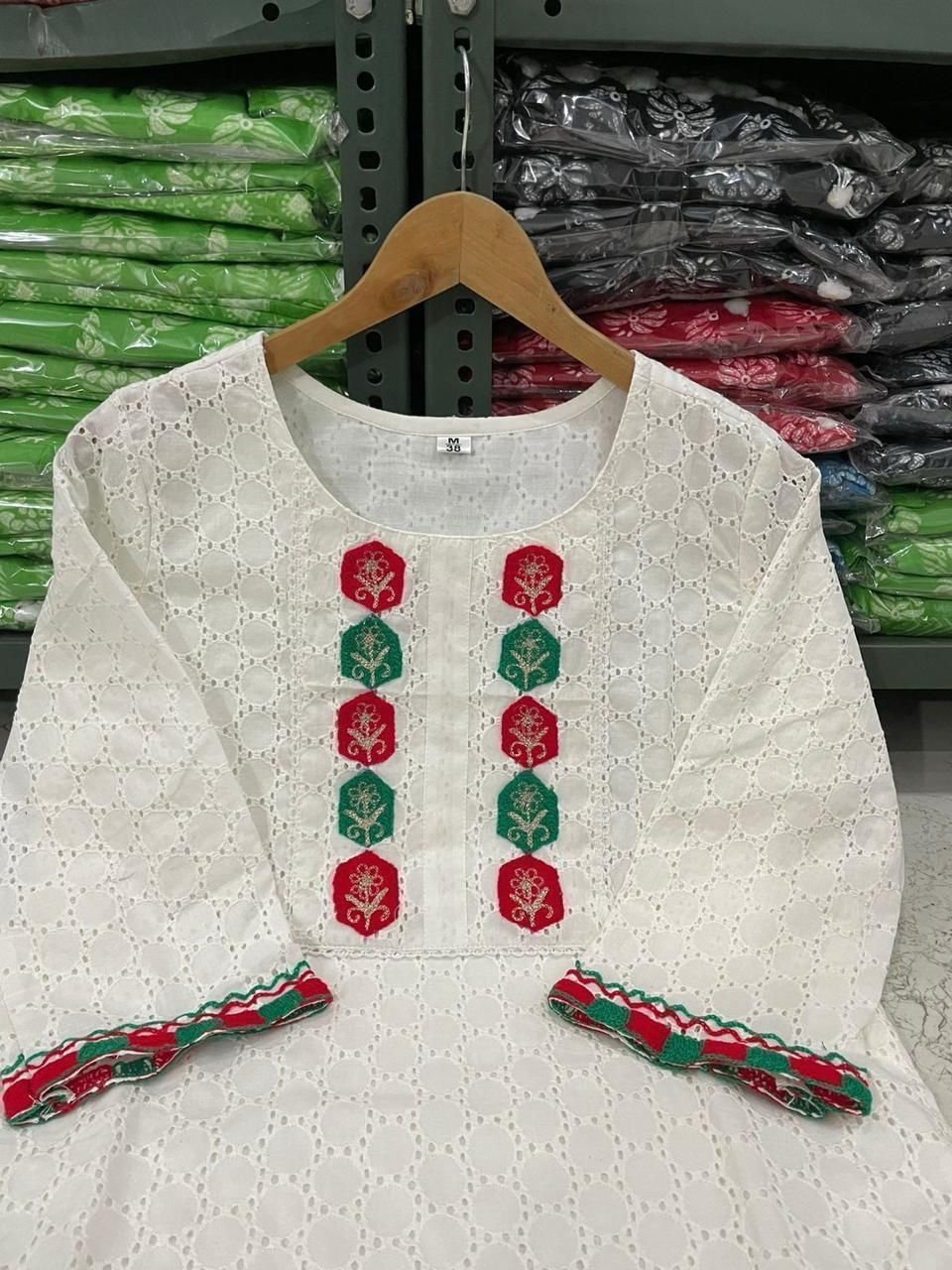 Schiffli Chikankari Cotton Kurta Set with Dupatta