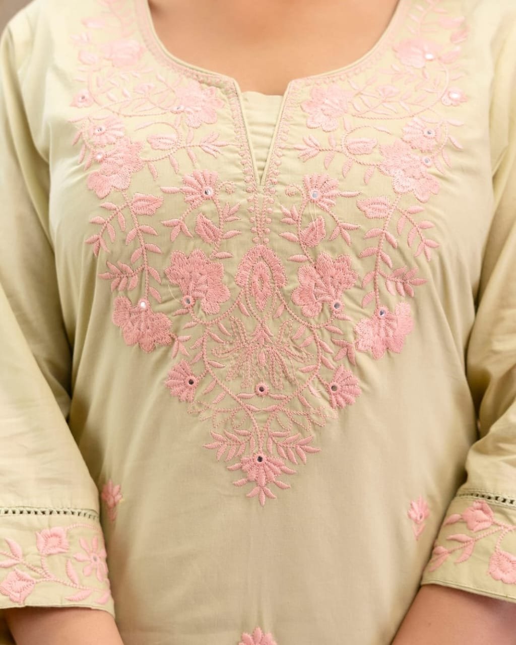 Intricate Embroidery Work on Neck, Sleeves & Hem
