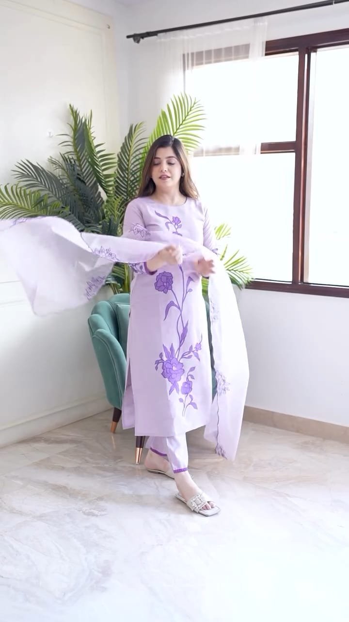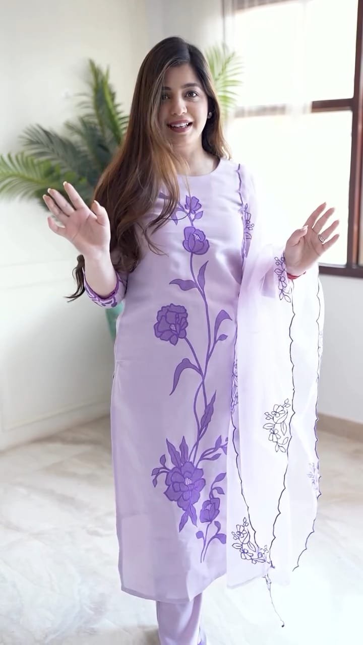 Purple Cotton Embroidered Festival Kurta Set