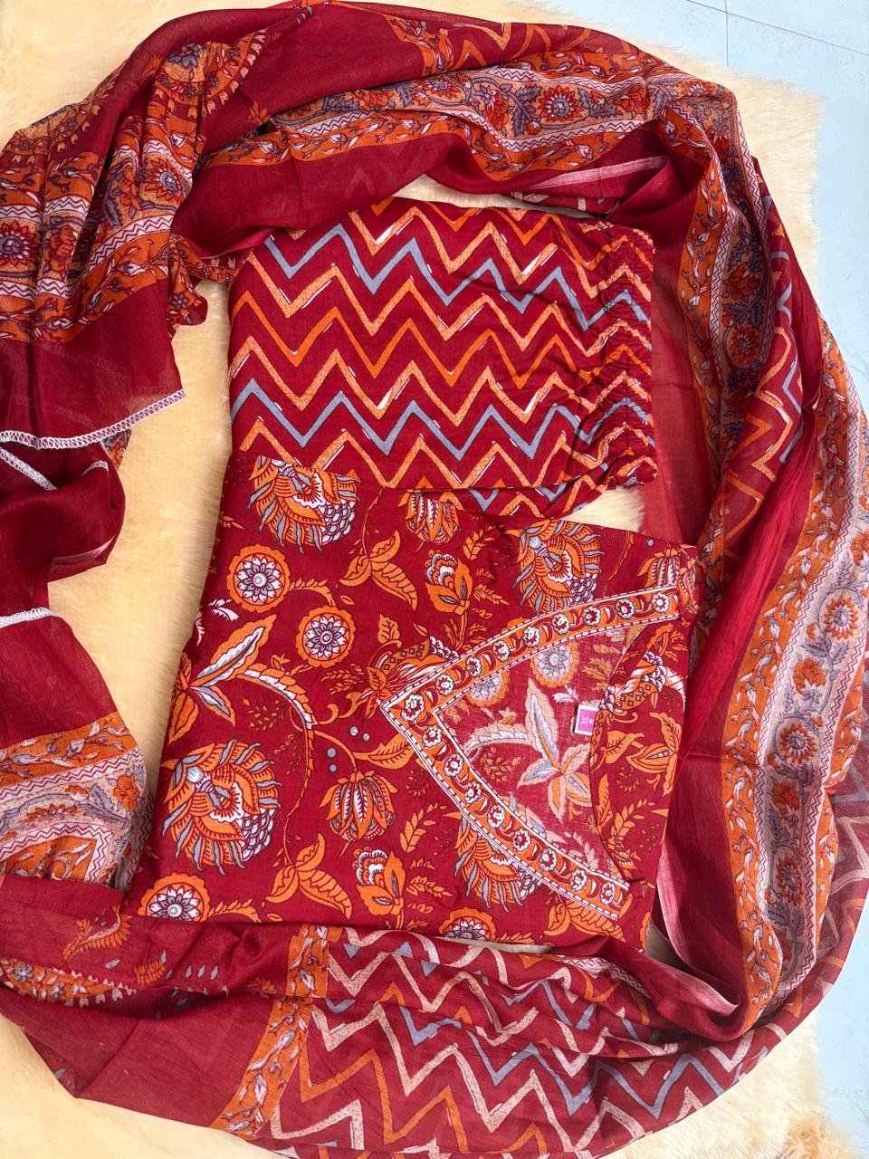 Festive Cotton Kurti Pant Set With Dupatta