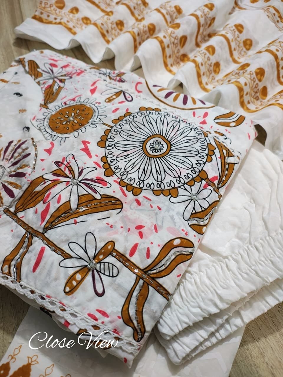 White Cotton A-Line Kurti Set