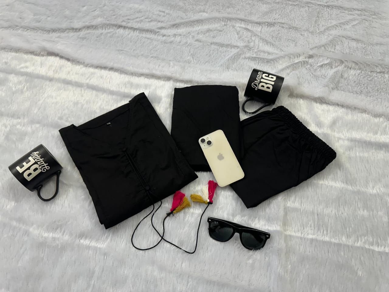 Black Embroidered Cotton Kurti Palazzo Dupatta Set
