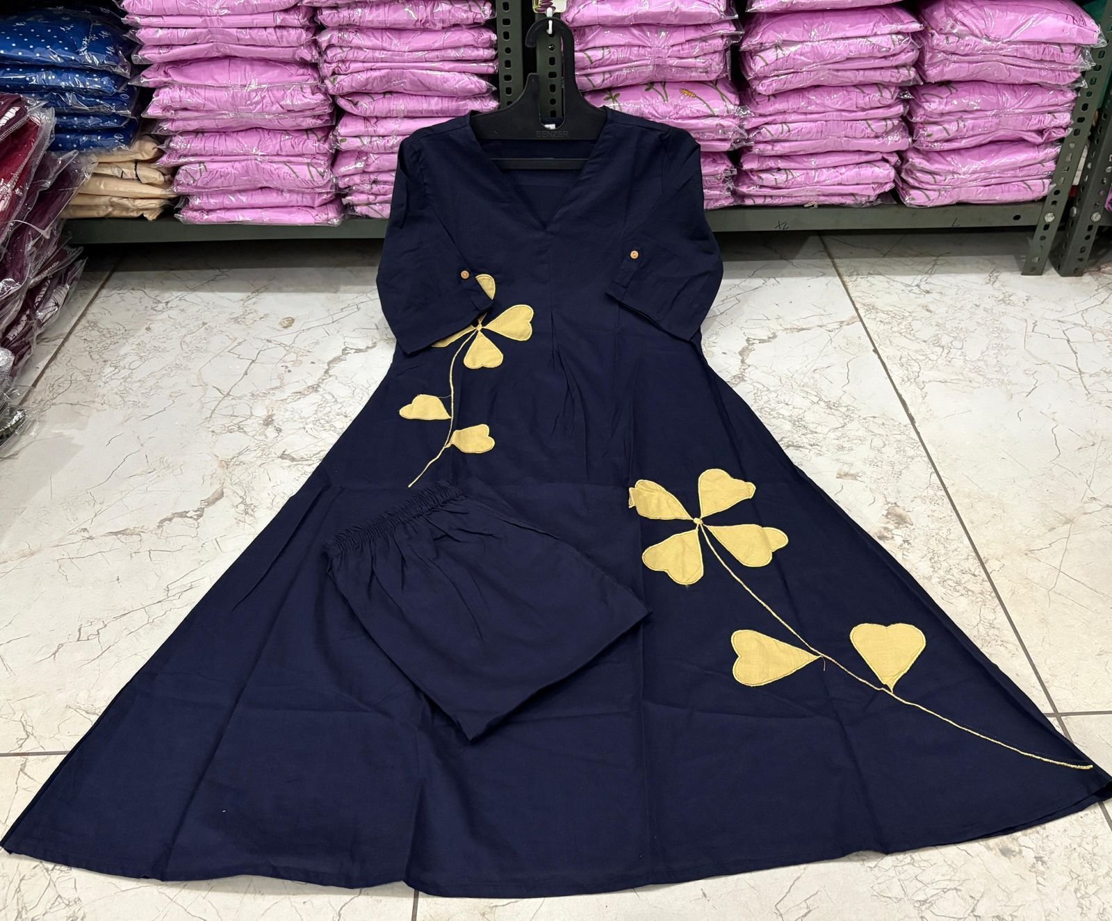 Blue Cotton Patchwork Cord-Set